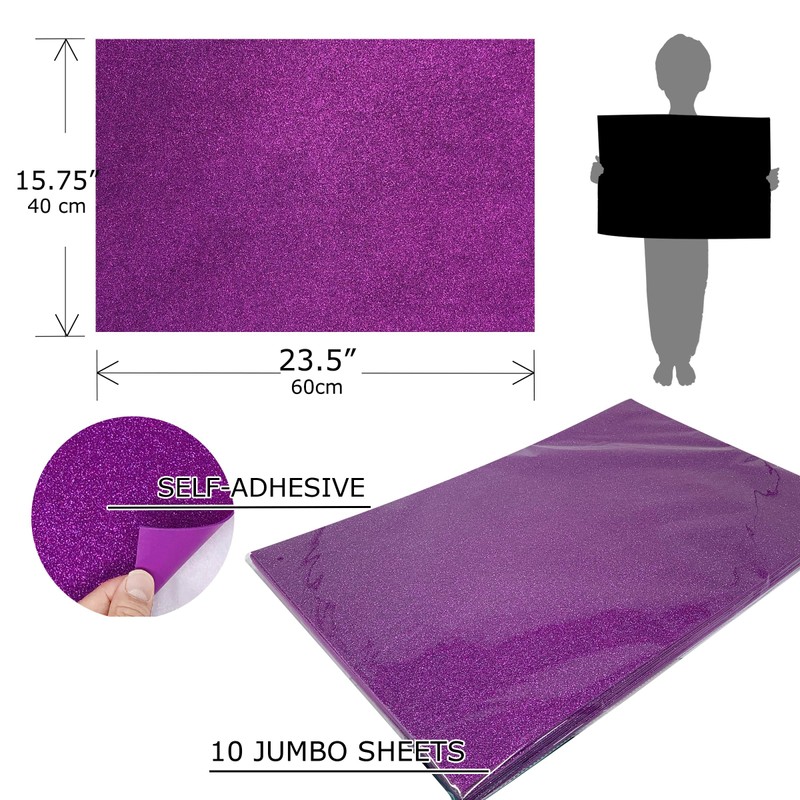Allgala Jumbo Self-Adhesive Glitter EVA Foam Sheets 10 Pack 16x24 inch (40x60cm) Paper Sheets- Purple Color-for Arts Crafts Projects, Classrooms, DIY Projects, Back to School Suppliers, Art Class