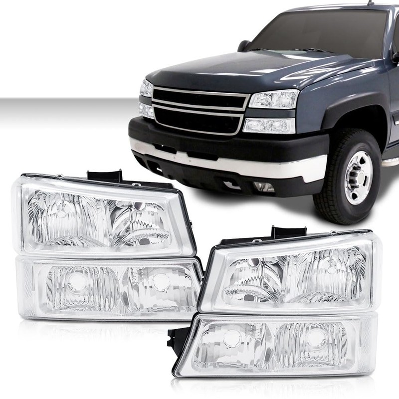 ALLGOOD Headlight Assembly Compatible with Chevy Silverado 1500 2500 3500 HD Models 2003-2006/ Fit Chevy Avalanche 1500 2500 03-06 (Fit No Cladding only)