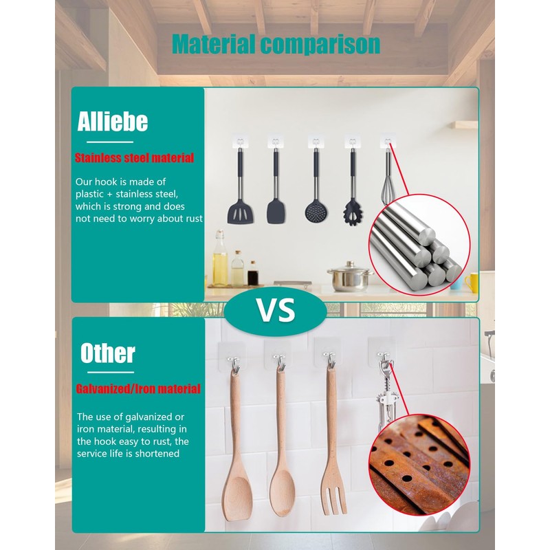 Alliebe Hooks for Hanging,10 Pack Hold 44lb(Max),Large Hooks for Hanging Heavy Duty,Waterproof Adhesive Wall Hooks,Bedrooms,Living Rooms,Kitchens,Bathrooms Sticky Hooks,Towel Hooks Use for Dorm Room