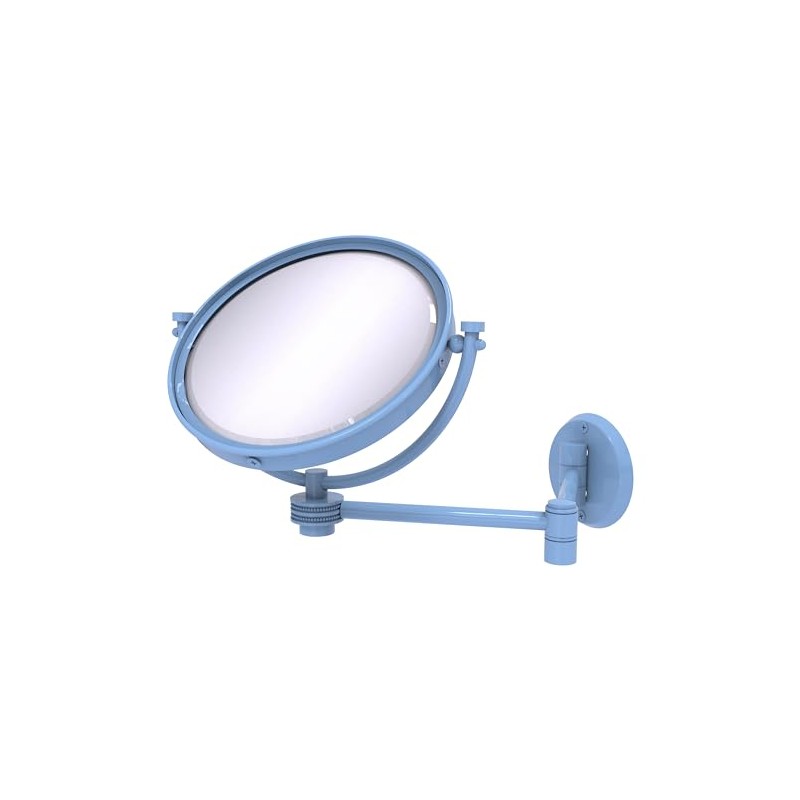 Allied Brass WM-6D/2X-FTB 8 Inch Wall Mounted Extending Make-Up Mirror 2X Magnification with Dotted Accent, Flat Troll Blue