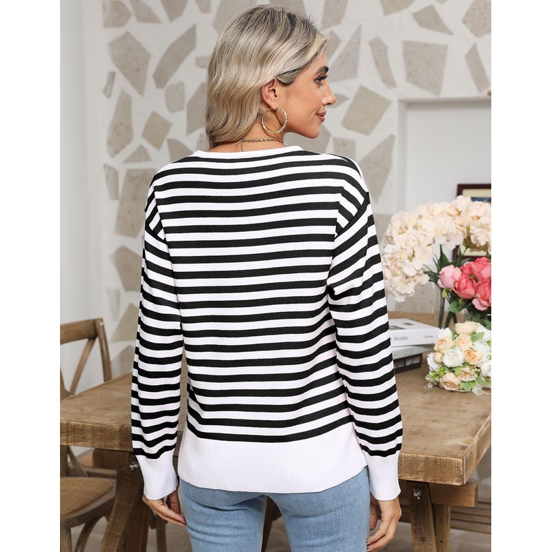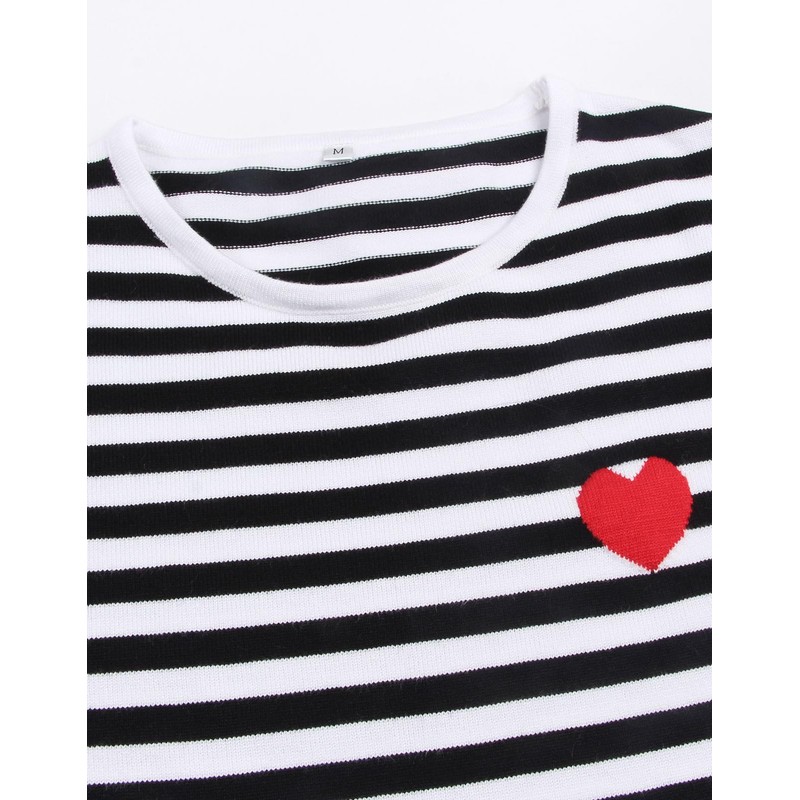 Allifewithu Womens Striped Sweaters Long Sleeve Crew Neck Pullovers Cute Heart Knitted Sweater White&Black Stripes X-Large