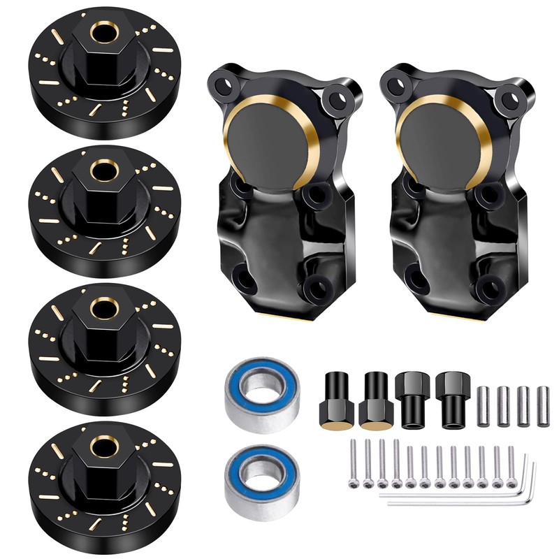 AllinRC Brass Wheel Weights Front Rear Differential Covers and Ball Bearings Compatible with Axial SCX24 1/24 RC Crawler Car Upgrades (Black Gold)