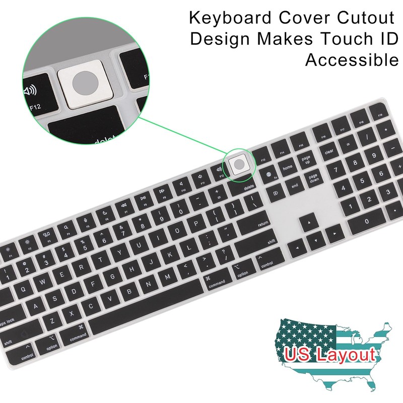 Allinside Black Keyboard Cover for Mac Magic Keyboard with Touch ID and Numeric Keypad A2520 US Layout