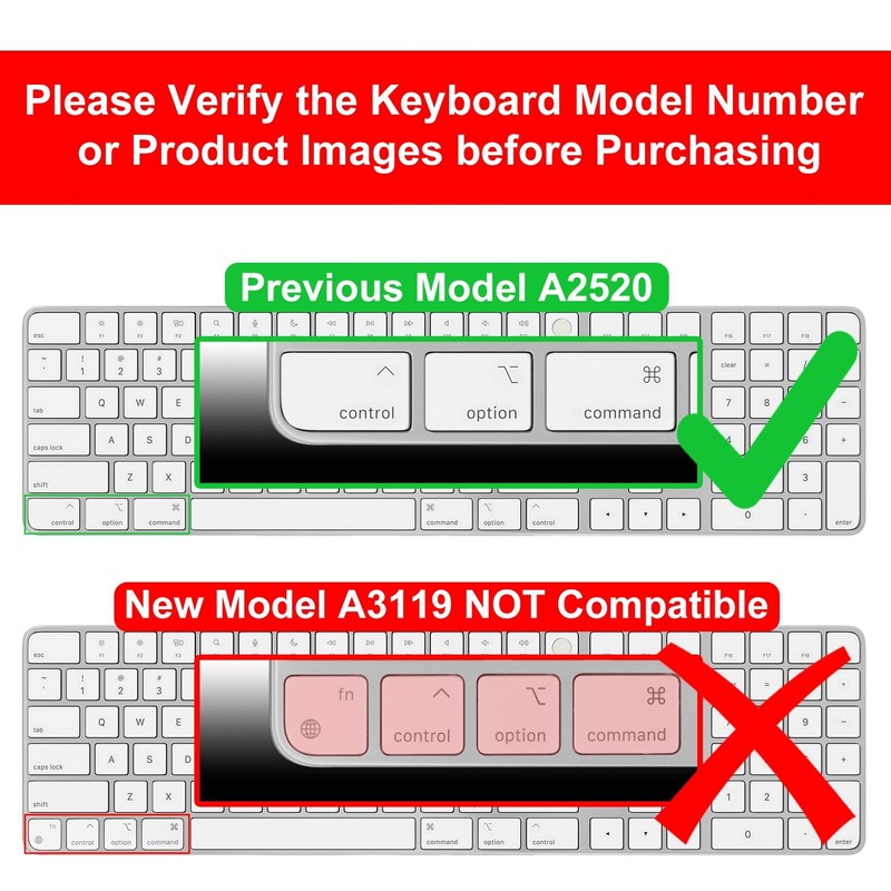 - Compatibility:ONLY compatible with iMac Magic Keyboard with Touch ID and Numeric Keypad - Model A2520. Please refer to the picture for model confirmation. NOT compatible with A3119 released in October 2024