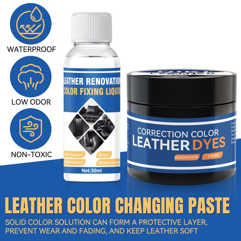 - Neufärben und Abdecken von Kratzern: Ideal zum Ändern der Farbe von Leder oder zum Reparieren von Lederfehlern, Abnutzung und Kratzern. Flüssigleder Schwarz und Farbwiederherstellung. Die Fixierlösung kann eine Schutzschicht bilden, um Abnutzung und Verblassen zu verhindern und das Leder weich zu halten.