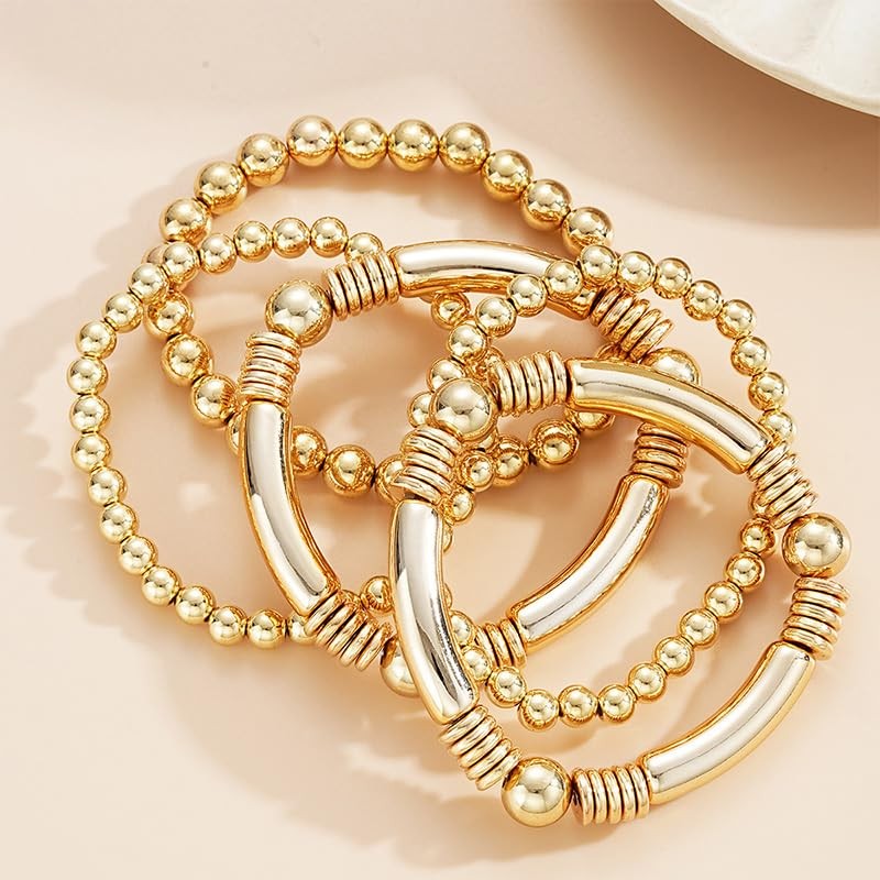 • 1. Gold & Silver Statement Beads​​ These stretch bracelets are total eye-candy with chunky gold or silver-plated beads that scream trendy vibes Stack ‘em high or wear solo—they’re the ultimate layering flex for your wrist game