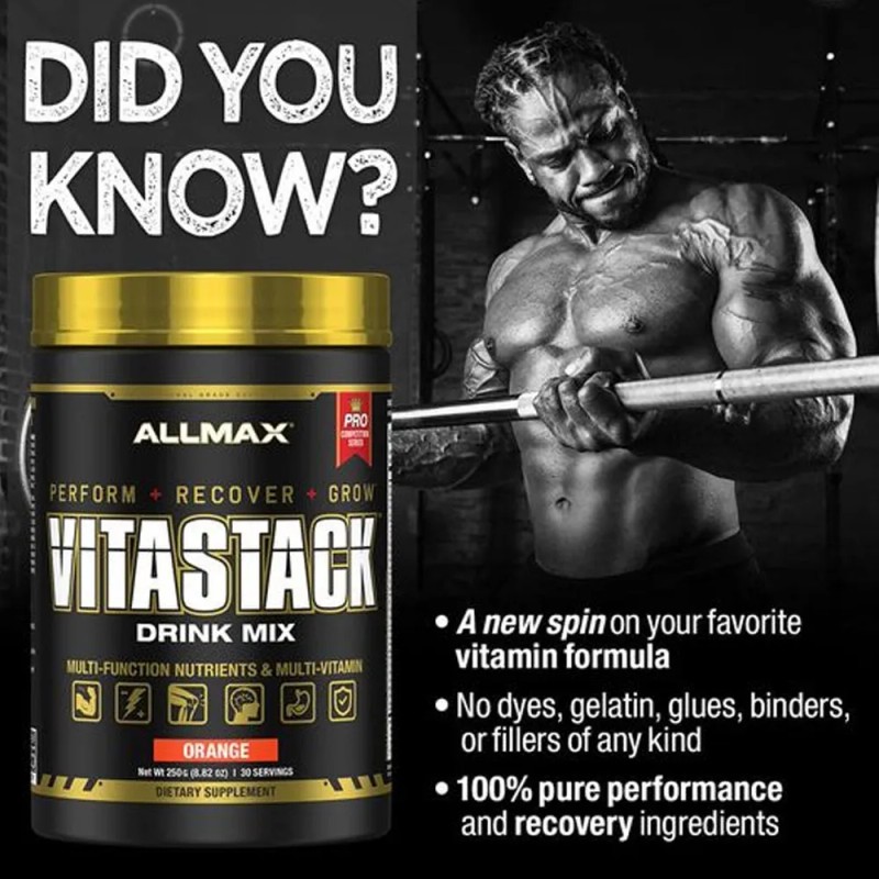 ✨ Allmax Vitastack Powder – ¡Tu Base Nutricional Completa para un Rendimiento Superior! 🍊💪 (250g, 30 Servicios, Sabor Naranja)