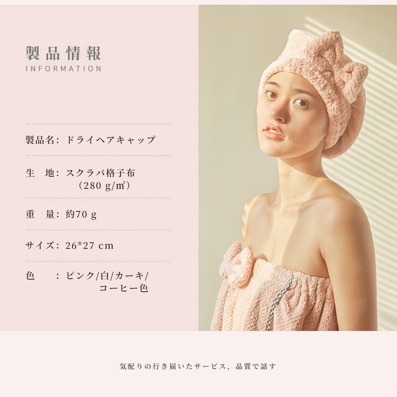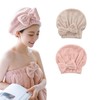 ALLMIRA Towel Cap, Set of 2, Hair Cap, Adult, Absorbent, Quick Drying, Hair Drying Towel, Hahoniko, Bath, Bowknot, Hair Towel, Cute, Thick, Hair Drying Cap, Cap Towel, Women's, White + Khaki, Pink + White, A, Potato Chestnut Powder + Khaki
