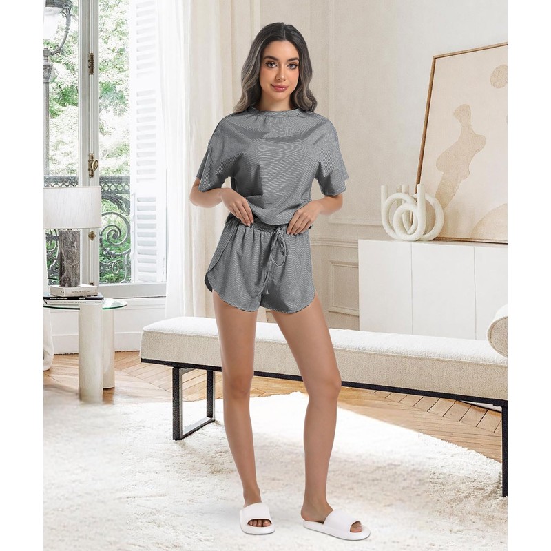 - Designs: Short sleeve pajama sets for women integrates striped print, crew neck, short sleeve, drop shoulder tee, high waist, drawstring, elastic waist pj shorts, side slit shorts, 2 piece set, fitting perfectly stylish split short pajama sets for women