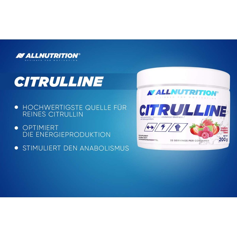 AllNutrition Citrulline Malate 200 g Tin with Flavour Amino Acids L-Citrulline (Raspberry-Strawberry)