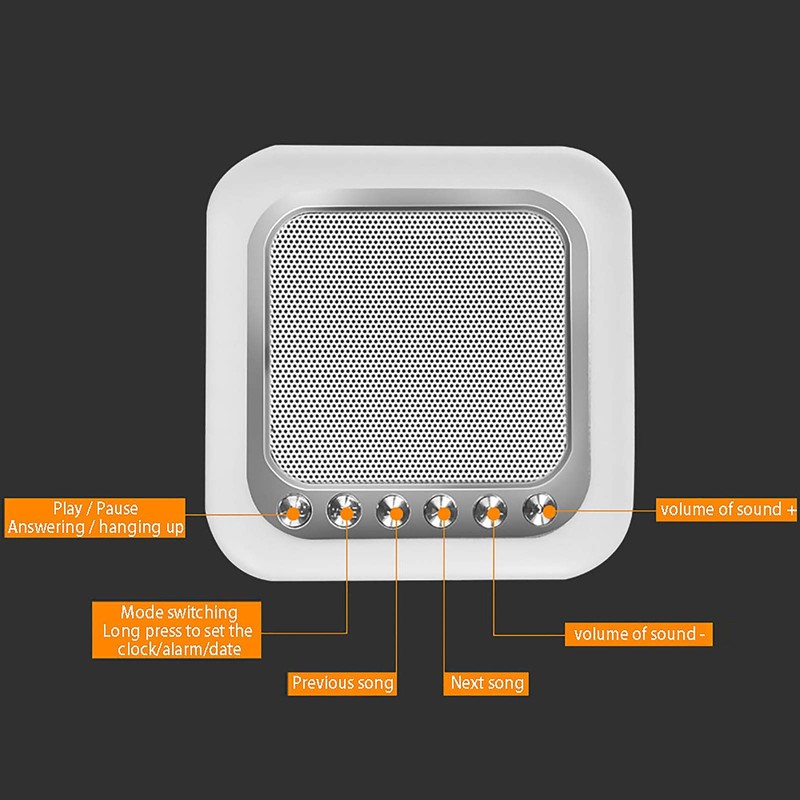 - đ”ă5 in 1 Multifunctională 5 in 1 Multifunctional Bedside Lamp Bluetooth Speaker Alarm Clock: Bluetooth 4.0 Hi-Fi Speaker + Lamp Side Touch Sensor + Digital Alarm Clock + MP3 Player + Hands Free Calling! Simply press the button to switch between these functions freely.