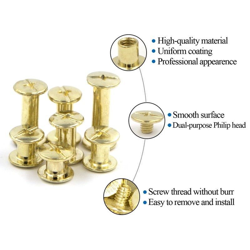 - ★Seguro: el ajuste apretado de nuestros tornillos Chicago dorados garantiza que tus piezas de piel permanezcan en su lugar de forma segura, incluso con un desgaste constante.