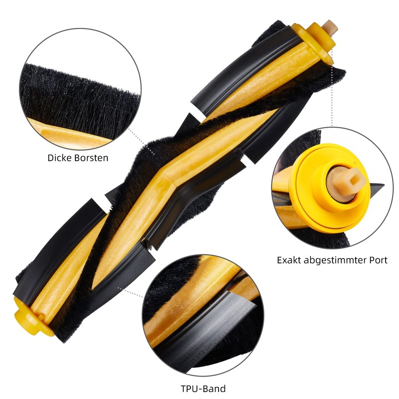 • ????Hauptb1rste & Seitenb1rste??Die Hauptb1rste hat dichte Borsten, rastet schnell ein und kann schnell und einfach ausgetauscht werden. Einzigartig gestaltete Seitenb1rste k?nnen mit verschiedenen Bodenoberfl?chen umgehen und entfernen alles von kleinem Staub bis hin zu gro?en Ablagerungen.