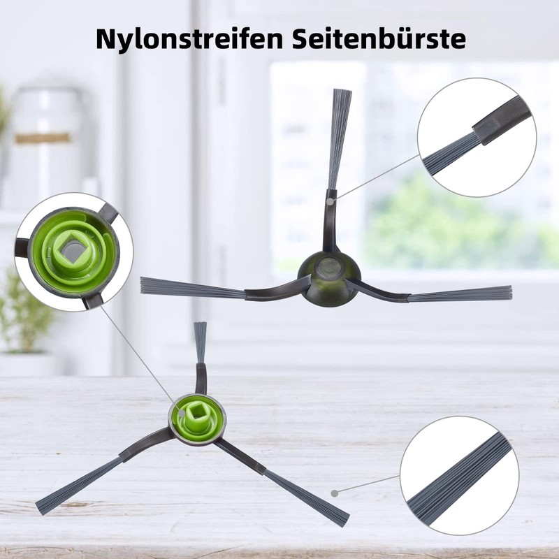 • ????Was im Paket??abnehmbare Hauptb1rste X2; Seitenb1rsten X8; Wischt1cher X4; HEPA filter X6; Werkzeug X1. Tipps: Pflege alle 2-4 Wochen, 2-4 Monate empfohlener Ersatz.