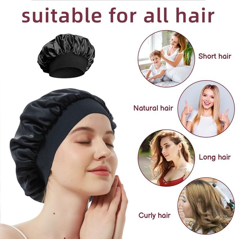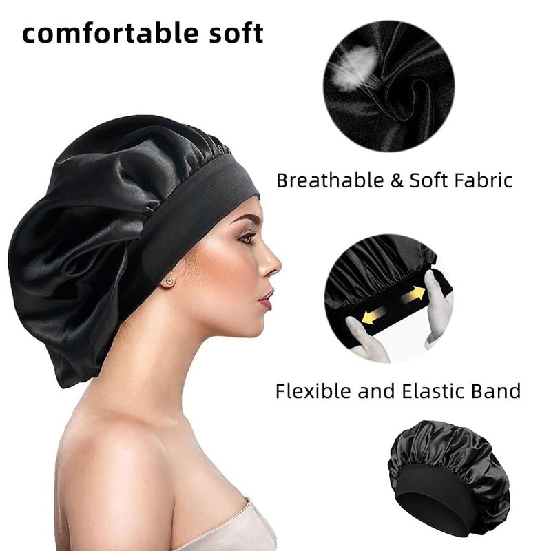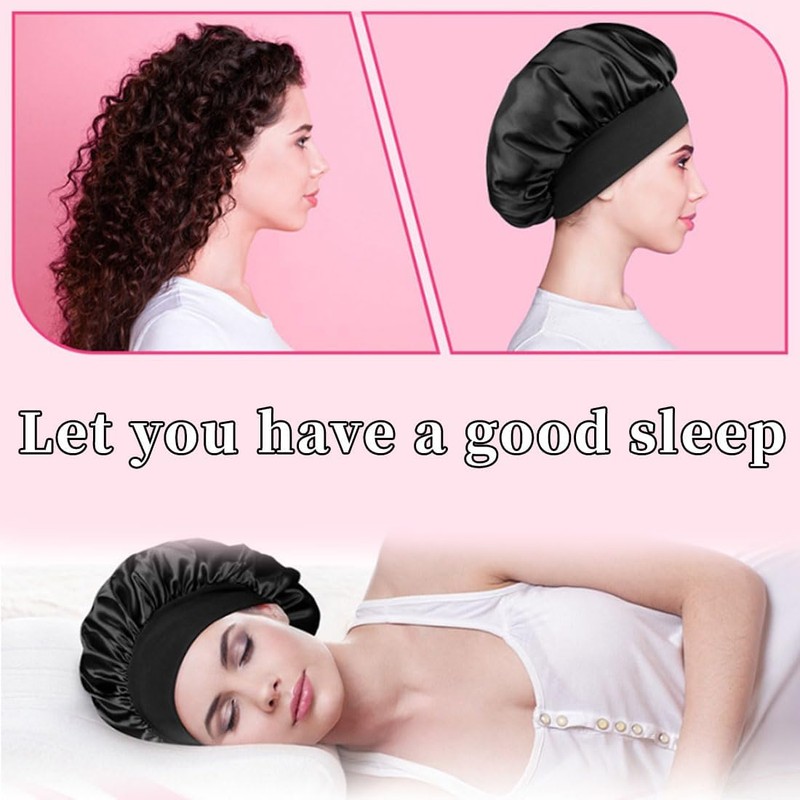 - Banda elástica grande: no es necesario ajustar manualmente el tamaño del gorro de dormir de satén, ya que la banda elástica ancha proporciona un ajuste cómodo que protege el cabello para que no se salga y no se siente apretado incluso después de un uso prolongado.