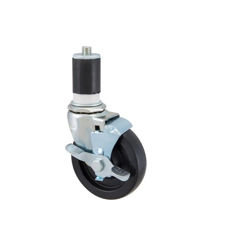 This item for Mavrik 1201067 is a caster stem designed to enhance mobility. This caster has a diameter of four inches and features a brake to secure its position when needed. It's suitable for various applications and ensures a smooth transition over surfaces.