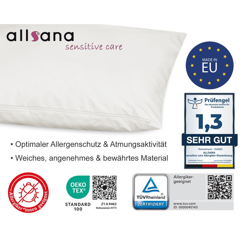 - Our tip: make sure that only encasings with TÜV seal guarantee sufficient protection for dust mite allergy sufferers. allsana sensitive care allergy sufferers intermediate covers protect you safely from mites and their allergens (mite droppings)