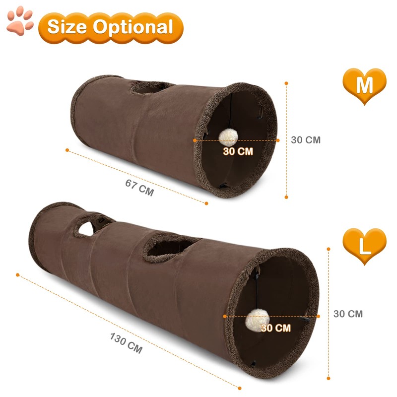 - Have Fun The play tunnel is equipped with a hanging plush ball at the entrance, your cats will clap for a long time as exercise and self-amusement. The crumpled fabric inside makes sounds when cats walk in, which makes them curious.