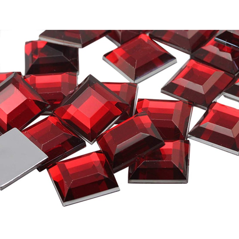 Allstarco 8mm Flat Back Square Acrylic Rhinestones Small Face Gems Body Jewels Card Making Embelishments - 75 Pieces (Red Ruby A05)