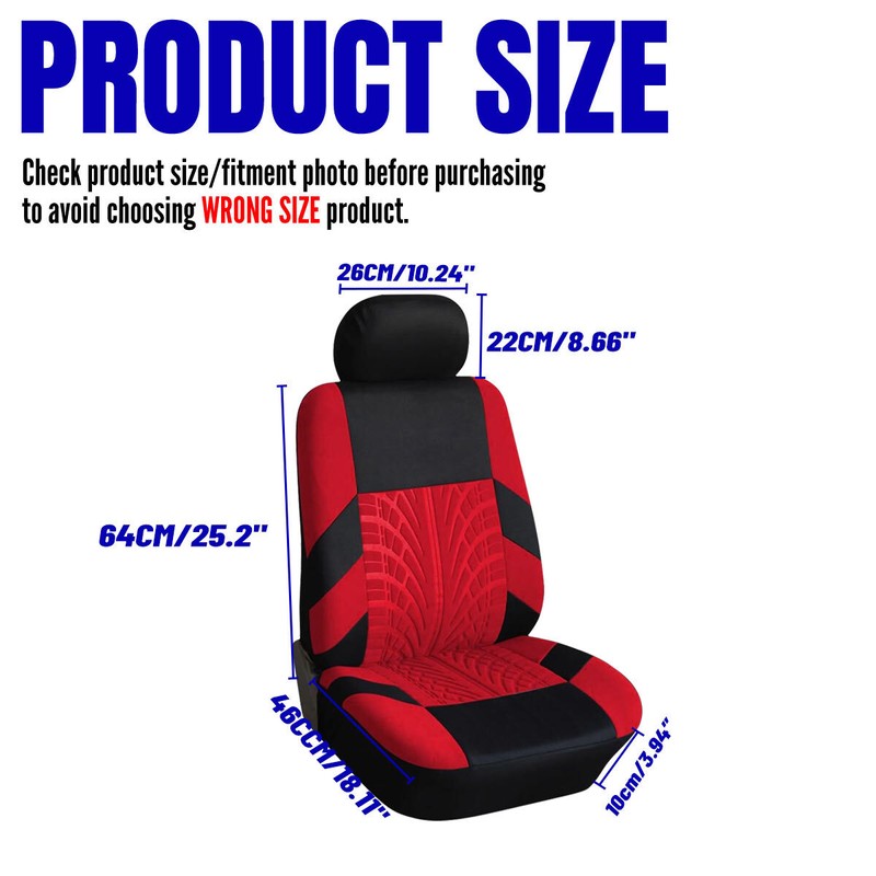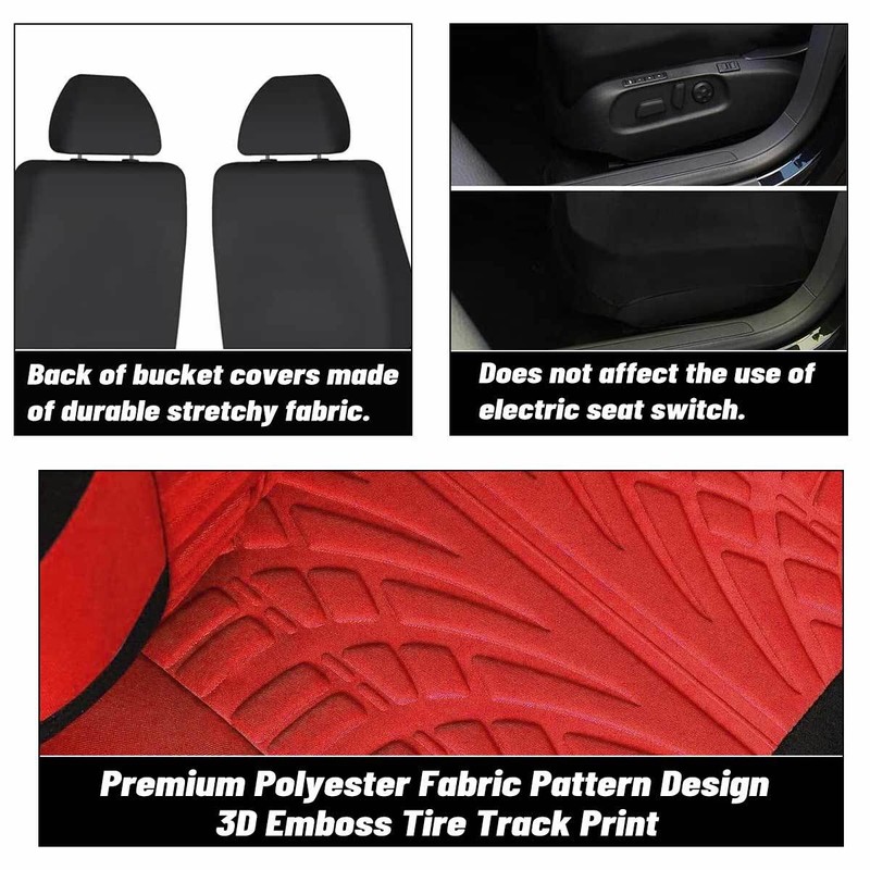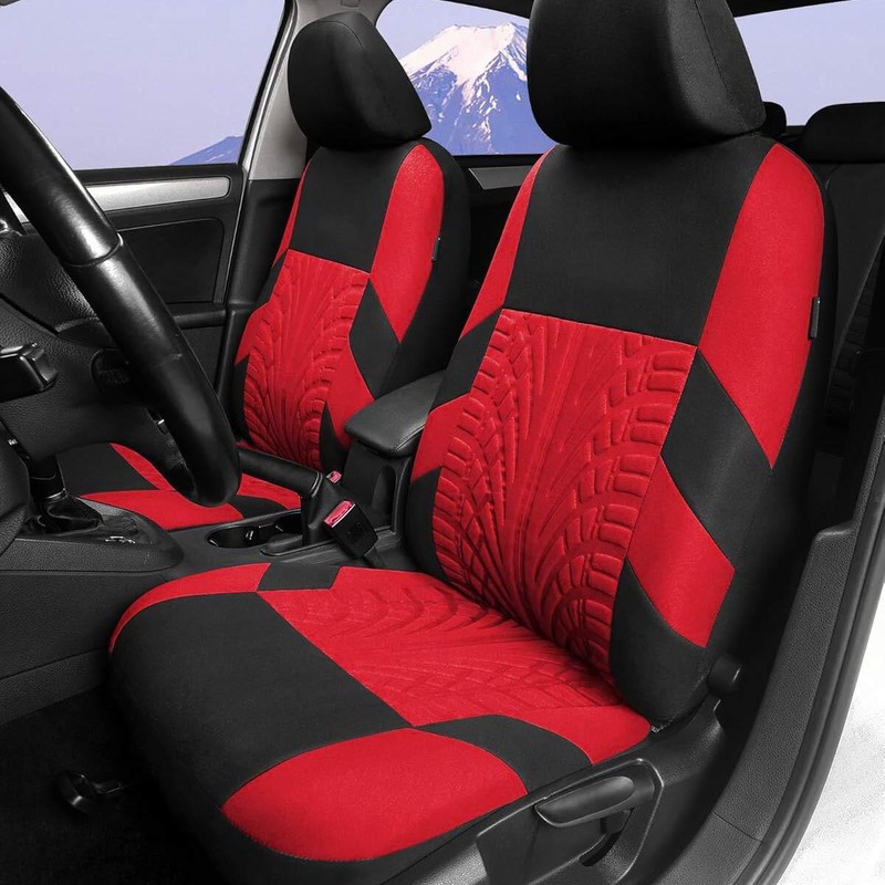 ALLTIMES Car Seat Cover Black + Red Front Left and Right Polyester Cloth -Universal 2pcs