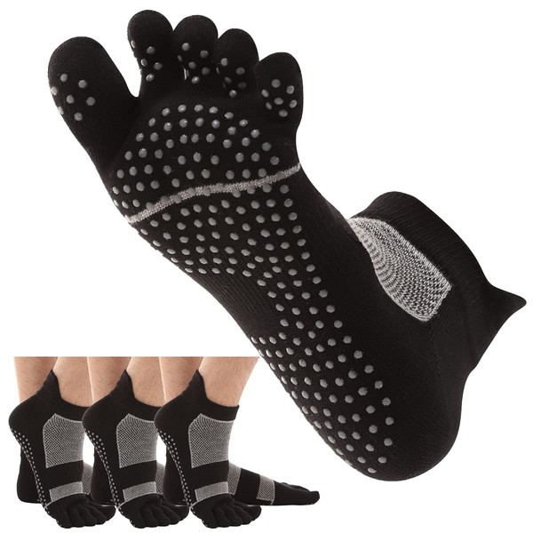 AllToze Men's 5-Toe Socks, Non-Slip, Set of 3 Pairs, Ankle Socks, Anti-Slip, Sports, 5-Toe Socks, 5-Toe Socks, black 3 pairs