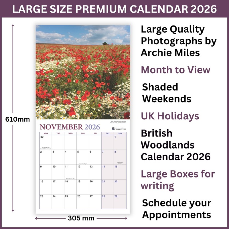 - ✅ 🇬🇧 BRITISH WILD FLOWERS CALENDAR 2026: Features stunning images of British Wild Flowers in UK. Perfect for nature lovers and photography enthusiasts. Extra large premium wall calendar 610mm x 305mm with shaded weekends and Monday Start