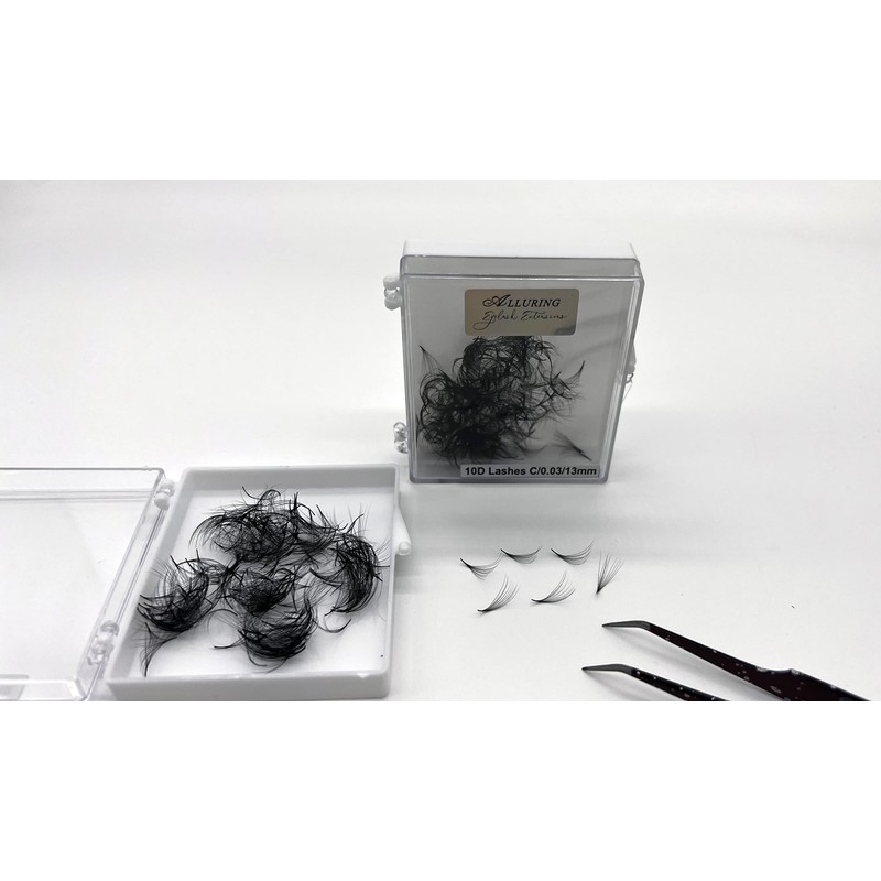 Alluring Loose 10D 8D Premade Lash Fans 0.03mm 0.05mm C or D Curl Eyelash Extensions - 500 fans (10D C Curl 0.03mm, 18mm)