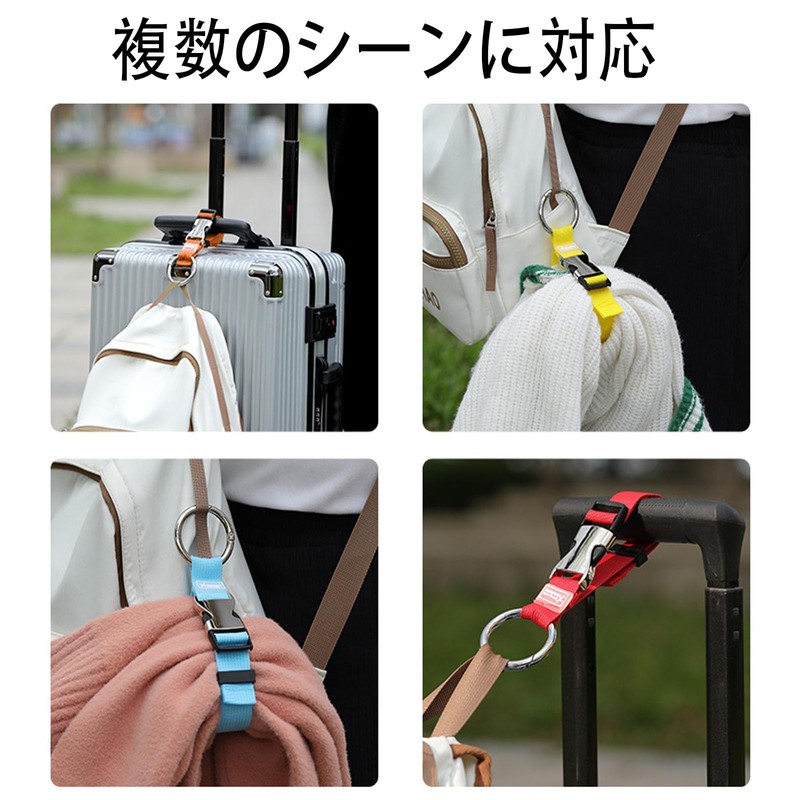 【幅広い用途】可調節荷物フックは、旅行や生活の中で物を持ち運ぶために使用されます。例えば、飲料ボトルや衣服、バックル付きの重い物品(バッグやスーツケースなど)に最。出張や旅行、季節の変わり目に重宝すること間違いありません。