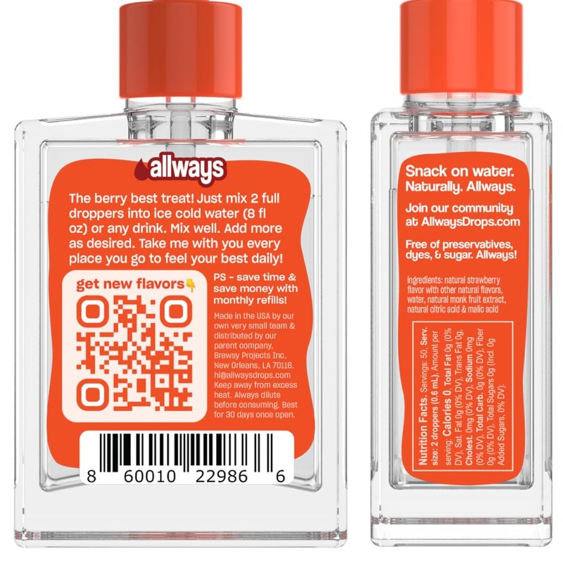 - Tailored for Your Lifestyle: Your flavor, your rules! Allways Drops are the chameleons of taste, adapting to your dietary preferences with grace and style. Whether you're a keto warrior, a paleo pioneer, or you've got a unique dietary dance of your own, these drops are here to make every gulp an expression of your individuality. Sip confidently, knowing that your taste and lifestyle are celebrated.