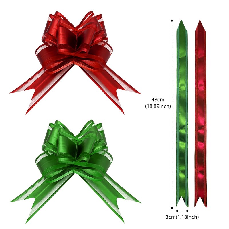 - 💝Pull Bows - Package includes 10 strips bow ribbon, 5Red+5Green. Enough quantity to meet your decoration or packaging needs.