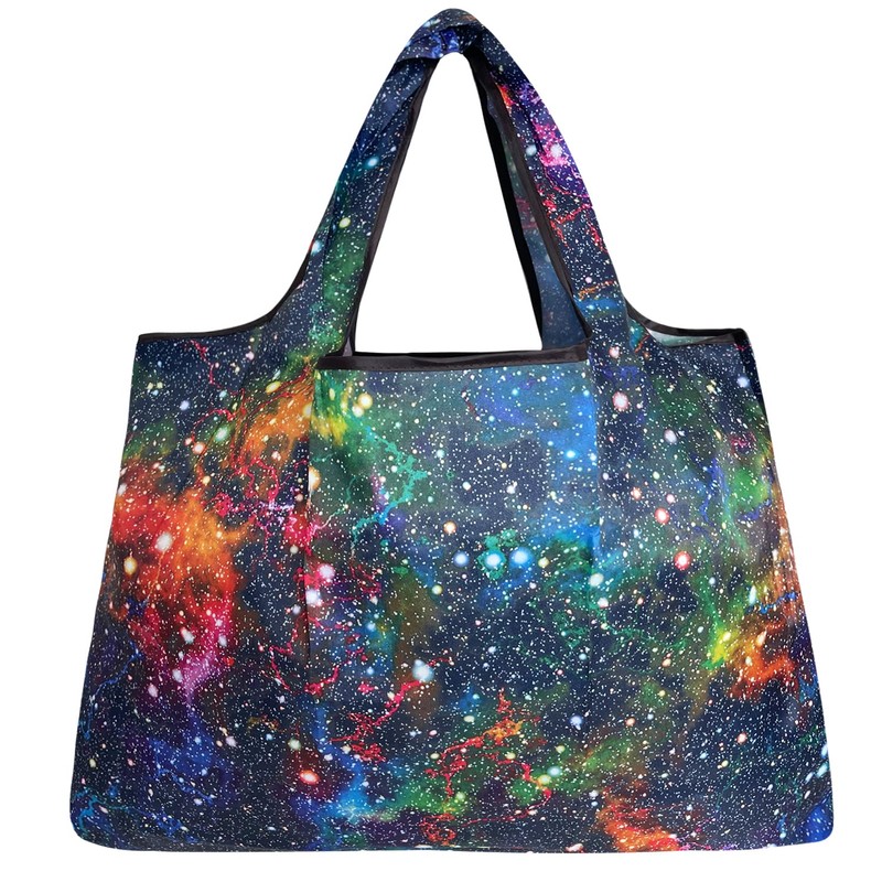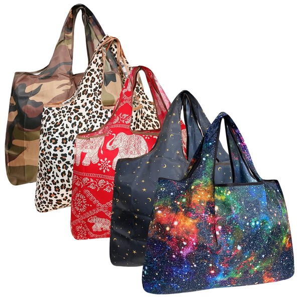 allydrew Large Foldable Tote Nylon Reusable Grocery Bags, 5 Pack, Exotic Space