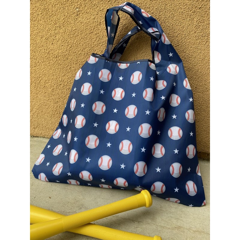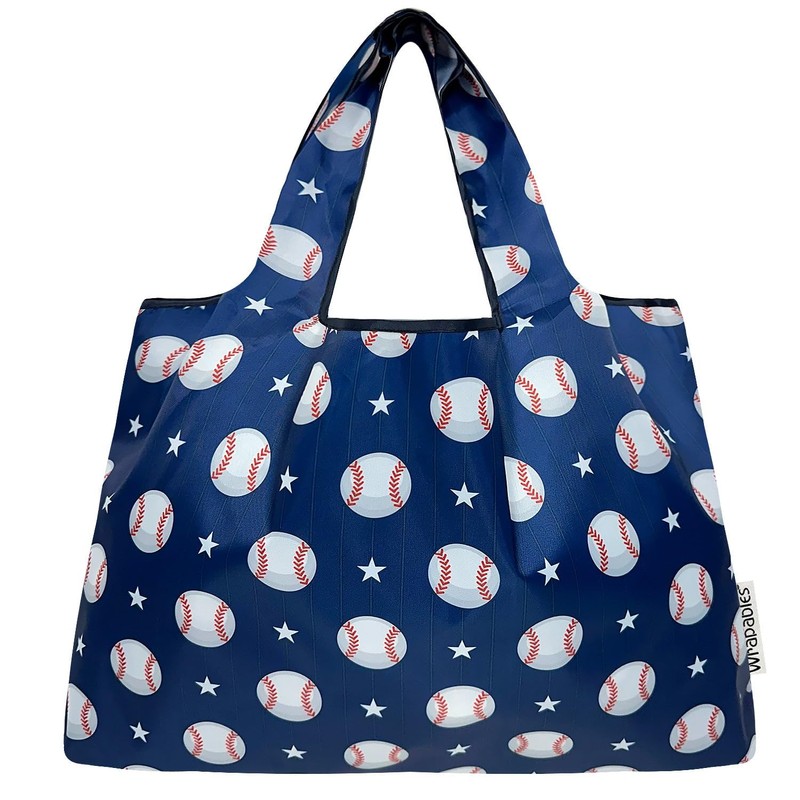 allydrew Large Foldable Tote Nylon Reusable Grocery Bags, Baseball
