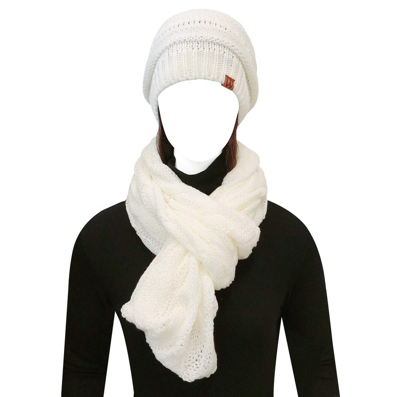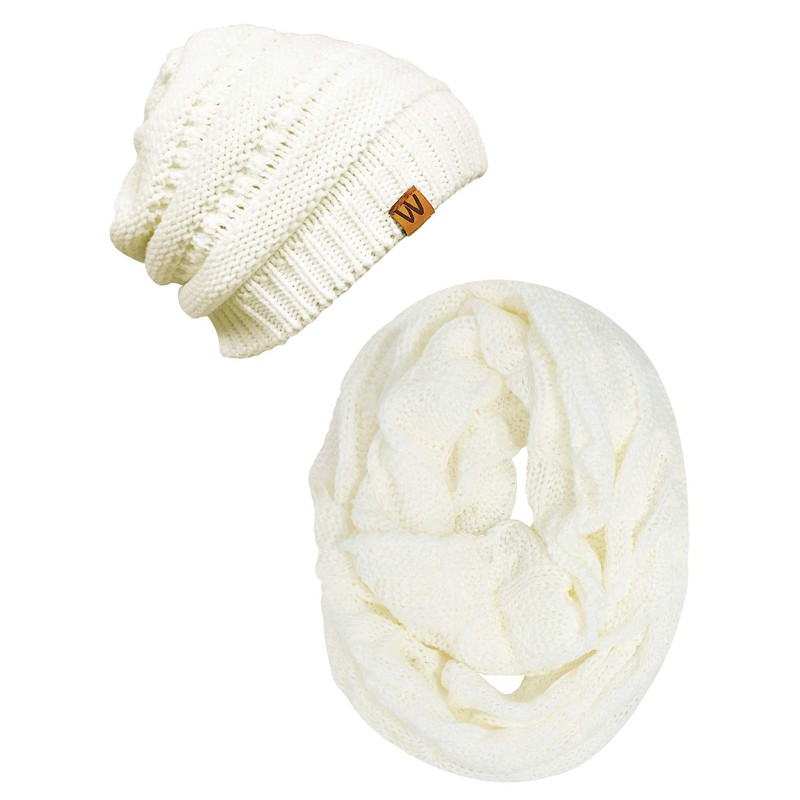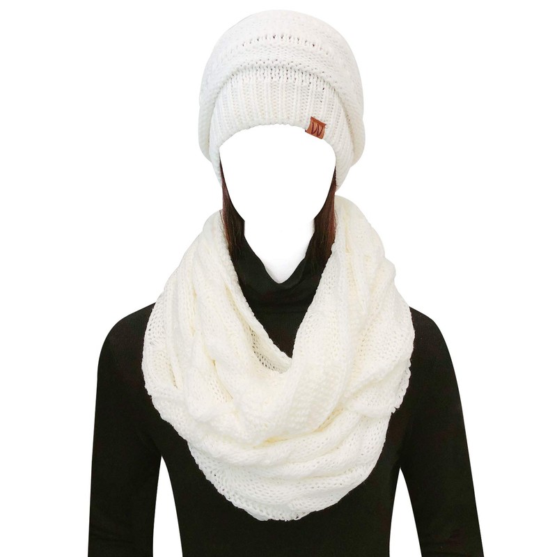allydrew Soft and Chunky Thick Knitted Infinity Scarf and Beanie Set, White