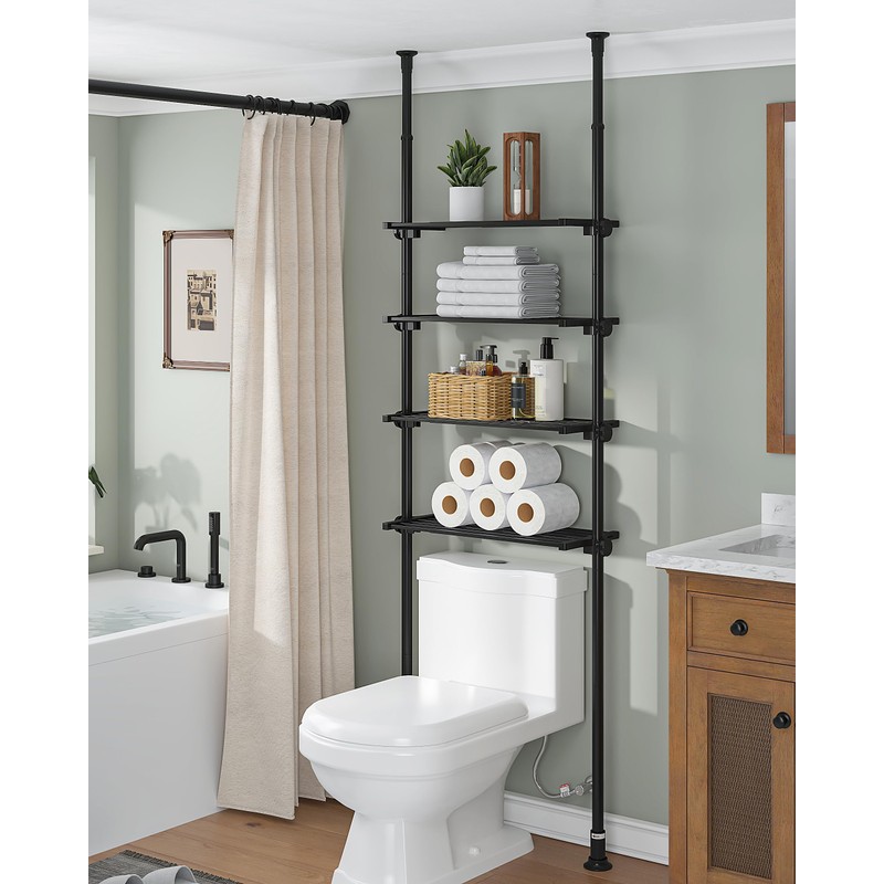 ALLZONE Adjustable Over The Toilet Storage Shelf, 4-Tier Ample Over Toilet Bathroom Organizer and Storage,Tension Mounted above Toilet Storage Cabinet for Versatility, Fits 64-113 Inch Heights, Black