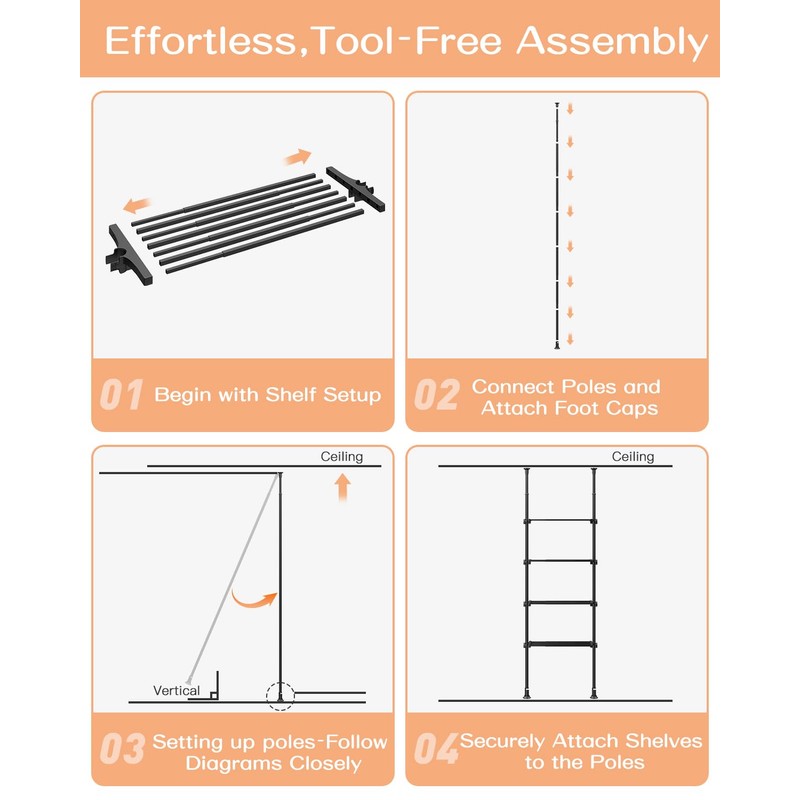 - EASY ASSEMBLY - The bathroom cabinet organizer can be easily assembled with the included step-by-step instructions. No tools or drilling are required. Eliminate all your assembly troubles! Please note that it is not suitable for sloped ceilings.