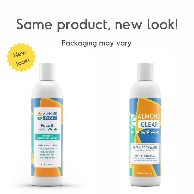 Almond Clear Face & Body Wash | for acne & folliculitis-prone skin, anti-aging, dark spots, ingrown hairs | everyday exfoliating cleanser with mandelic acid.