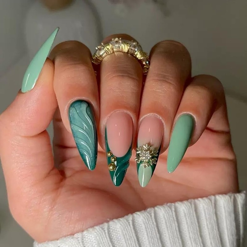 - Easy to Apply: Just clean your nails, then choose a suitable nail size, apply glue or jelly glue on your nails and press for a moment, you can have green nails press ons in a few simple steps. Normal care will last a few days, with glue it will last longer