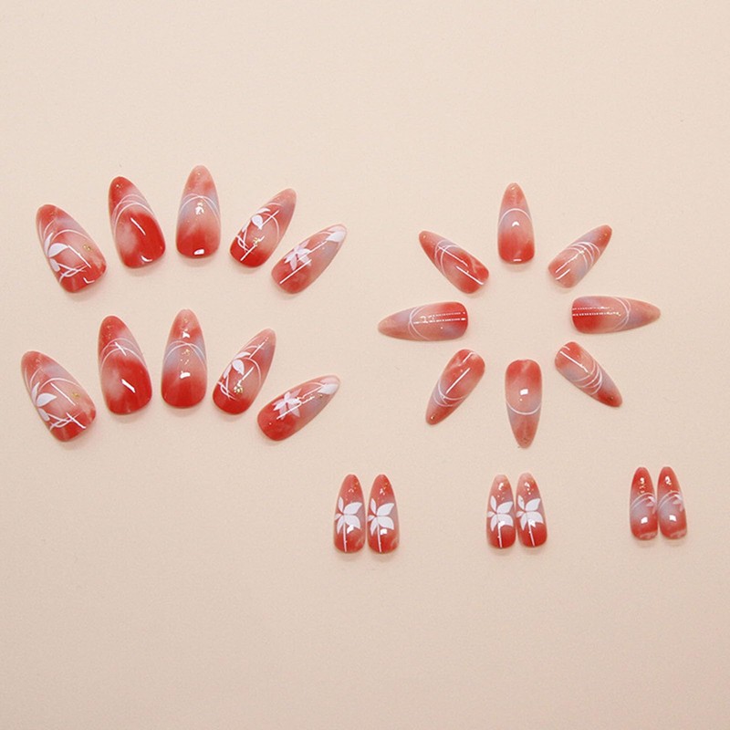 Almond Press on Nails Medium Fake Nails with Leaves Glitter Designs Glossy Glue on Nails Red Gradient Acrylic Nails Fall False Nails Cute Artificial Stick on Nails for Women 24Pcs