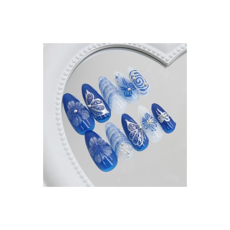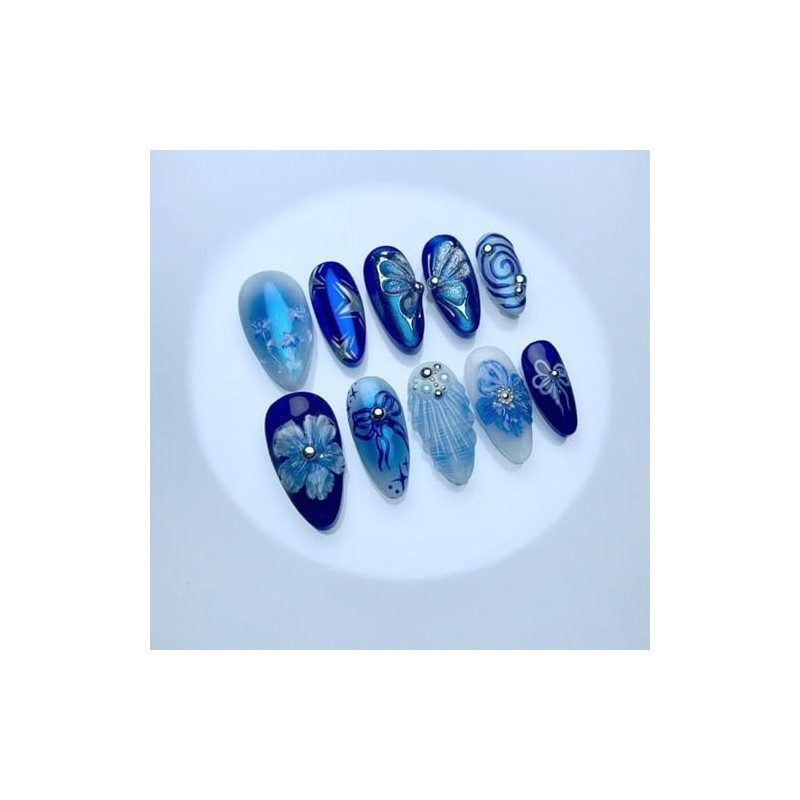 - Easy to Use:Choose the suitable full cover fake nails, polish the nail bed, paste the jelly glue, press the fashion nail art in 30 seconds, and create the nail art that girls like. If the blue fake nails size is not suitable, it can be polished to the size of the nail cap with a friction tool. They are easy to apply and remove. No special nail polish remover is required; only hot water is needed