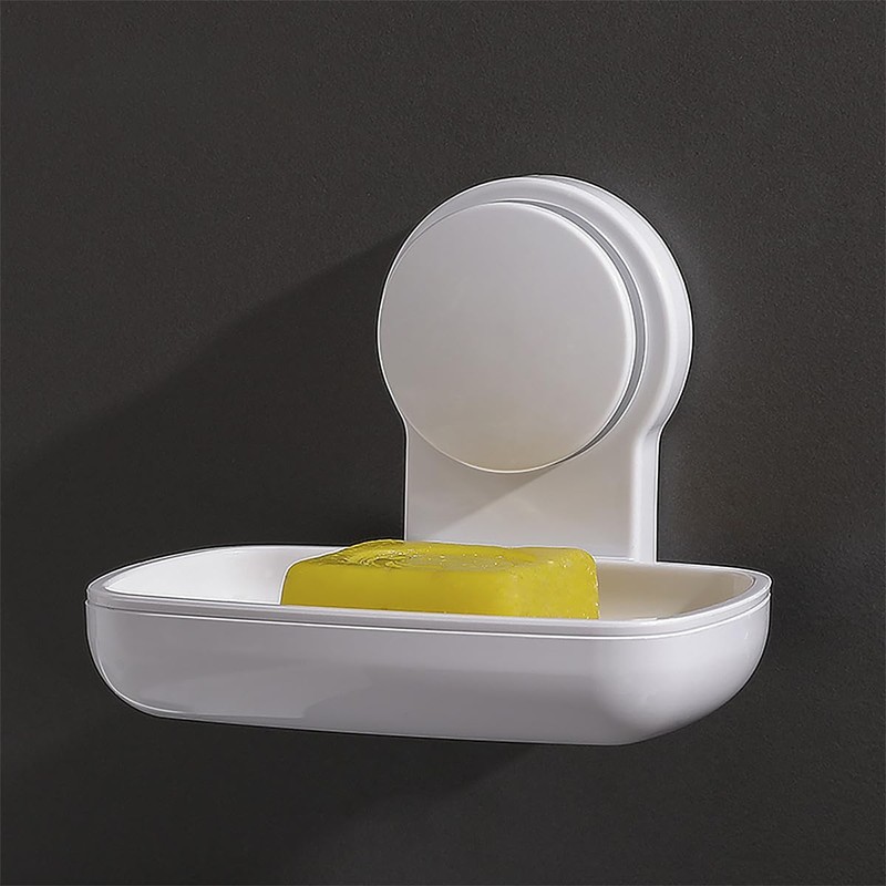 Alnicov Bath Suction Cup Soap Dishes with Drainage for Wall Mounted Soap Sponge Suction Container Drill-Free Removable White