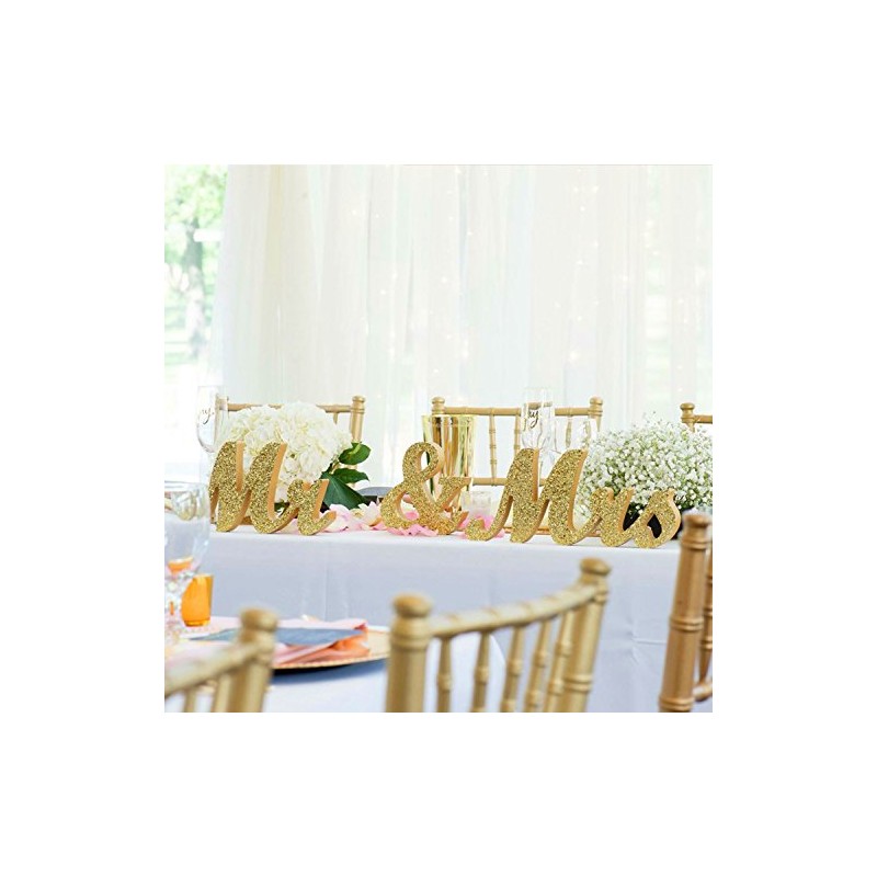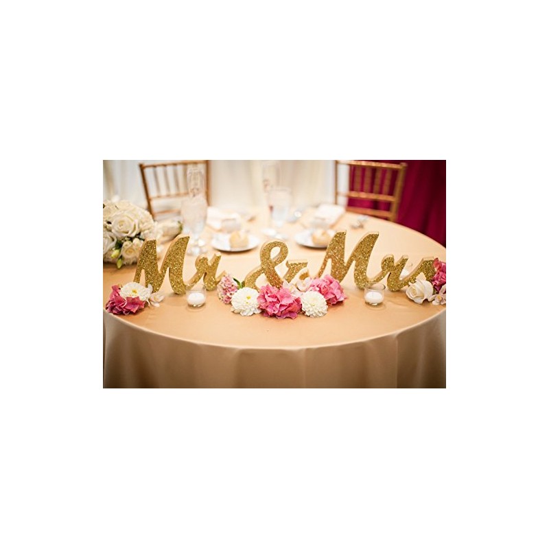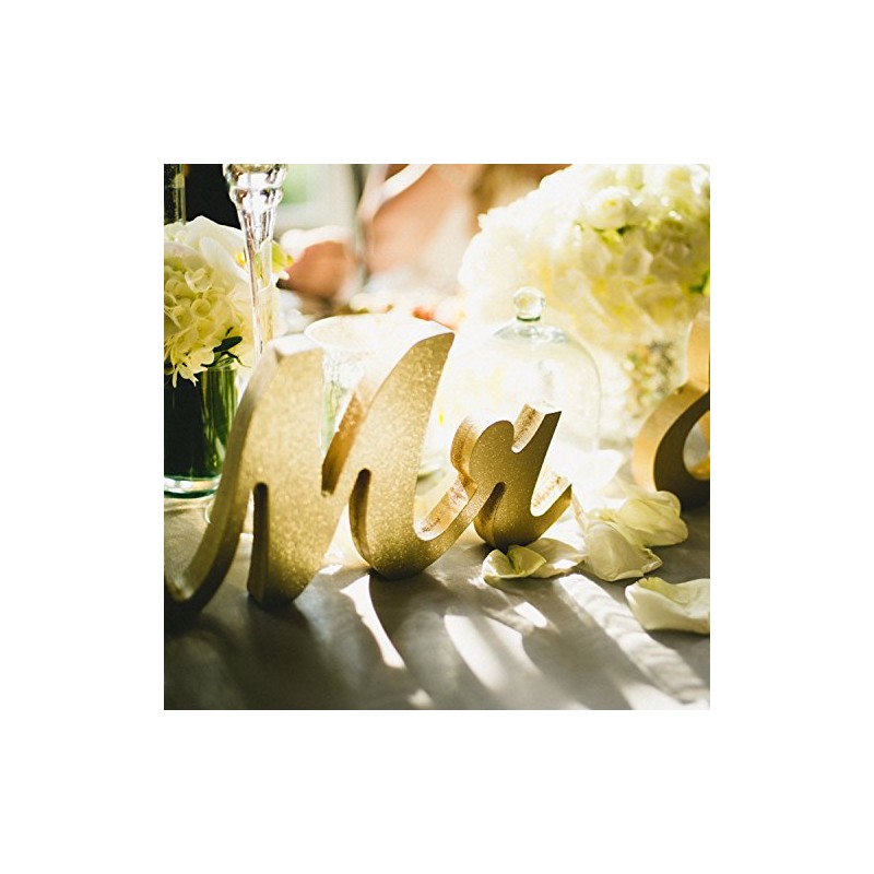- Flashing effec:Wedding Photo Props is 360 Degree Full-directional Flashing Effect. Sprayed with gold powder all around the “Mr & Mrs” signs creates a shining and bling effect,creating a romantic wedding ceremony,anniversary party for you