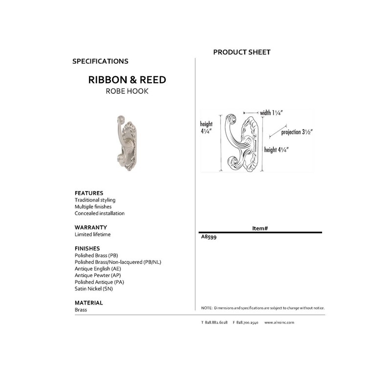 Alno A8599-PA Ribbon & Reed Robe Hooks Traditional, Polished Antique