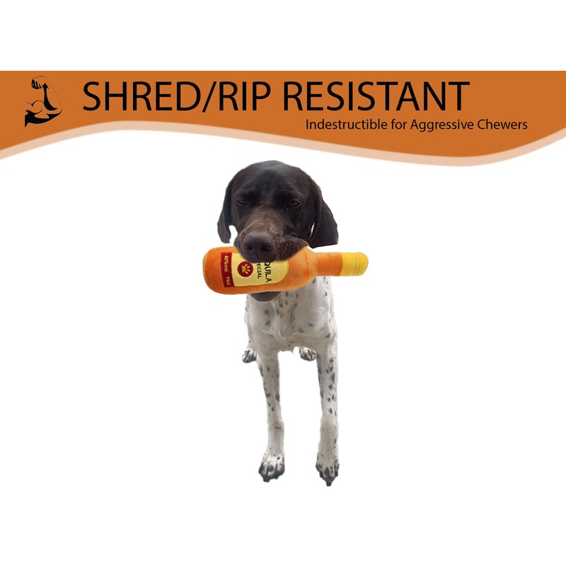 - 【PREMIUM QUALITY】It's a fun alochol dog bottle for all dogs. Our dog bottle is extra soft and durable and will not be ripped into pieces or pulled apart when chewed on. The tear resistance strength of our bottles are increased by 40%, more durable than most dog toys. Tested and approved by German Shepherds, Pit-bulls, American Foxhound, Mastiffs, Alaskan, and many other aggressive chewers.