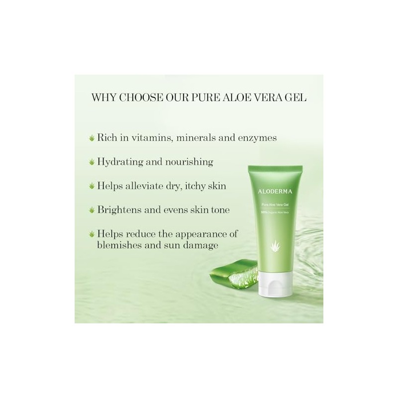🌟 💄 Aloderma Pure Aloe Vera Gel - Soothes and Hydrates Dry, Itchy, or Irritated Skin; great for Acne, Dandruff, Sunburn, Rashes (4 oz) 💄 🌟