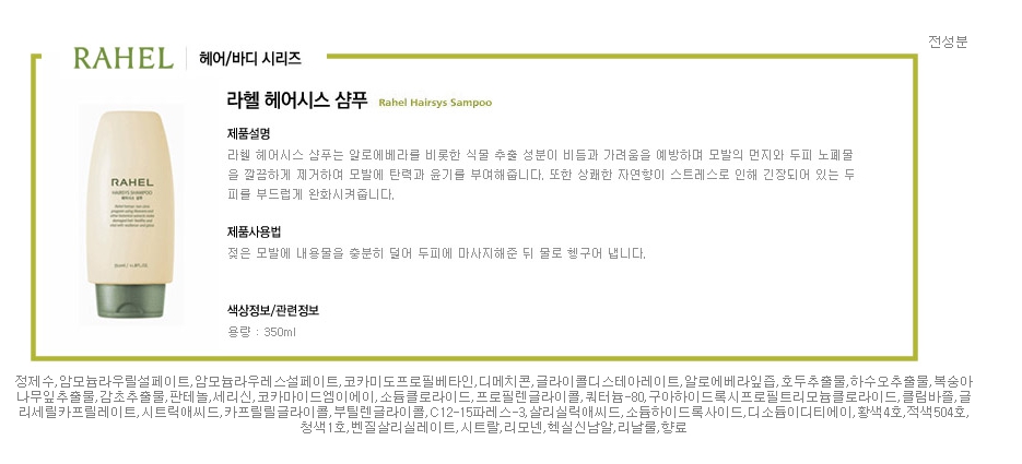 Aloe Maim Rachel Hairsis Shampoo 350ml