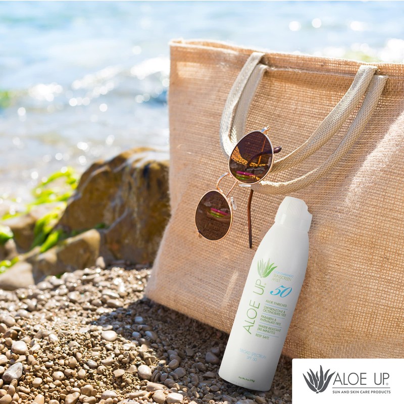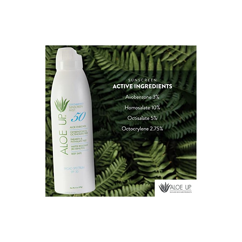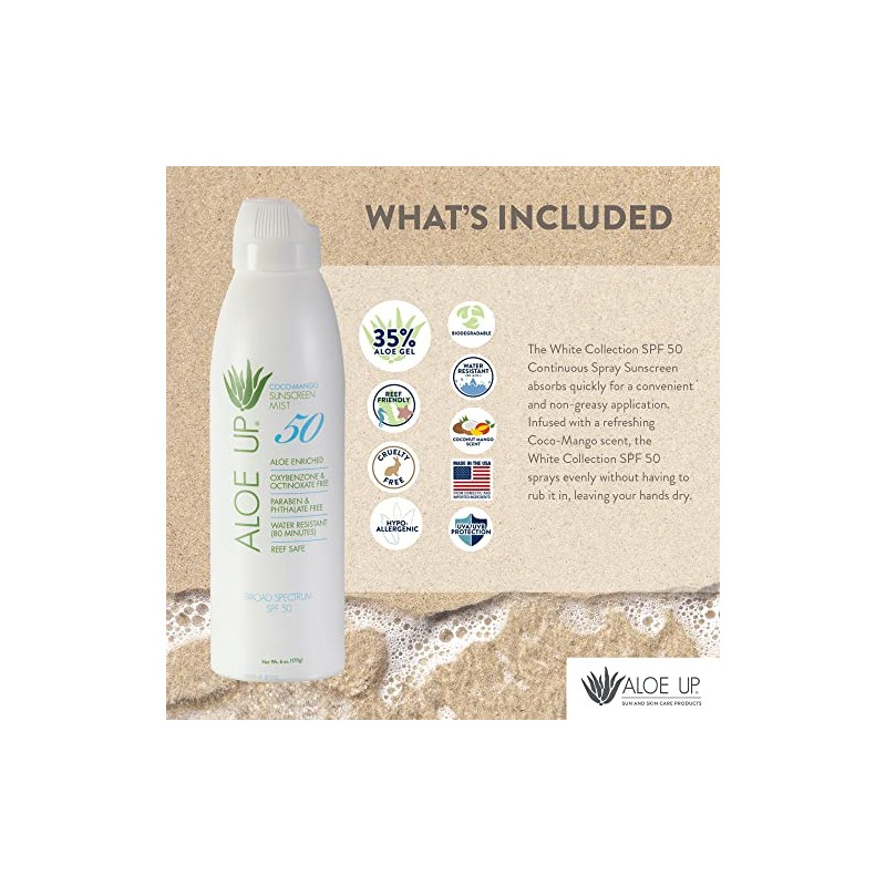 Aloe Up White Collection Continuous Spray: SPF 50 Sunscreen - Gentle Spray Sunscreen with Aloe / Safe for the Face or Body / Paraben Free, Cruelty Free, Reef Friendly / Made in the U.S.A / 5.5 oz