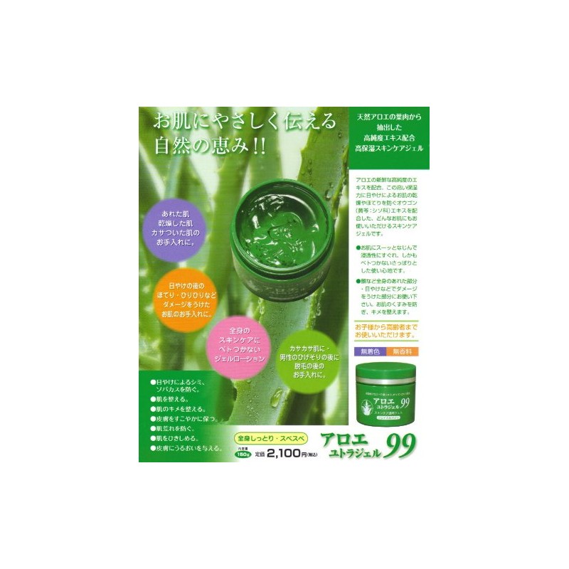 This skin care gel is formulated with a formulation of high-purity extract extracted from natural aloe leaf. Gel lotion that is smooth and comfortable to use. Uncolored and unscented. 5.3 oz (150 g). Suitable for children, elderly, and men.