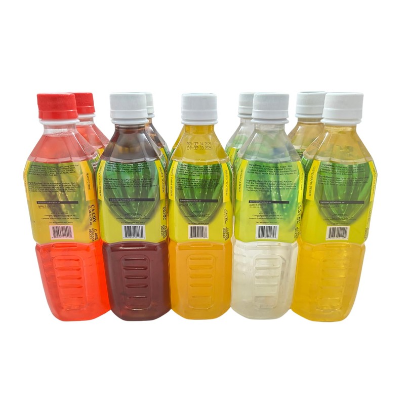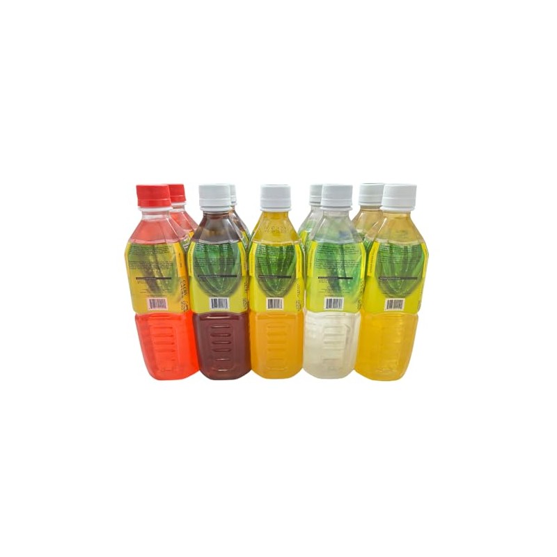 Aloevine Fruity Fun Variety Pack |16.9 oz. pack of 10 l 2 watermelon, 2 grape, 2 mango, 2 coconut, 2 pineapple | plant based Vegetable Korean drinks