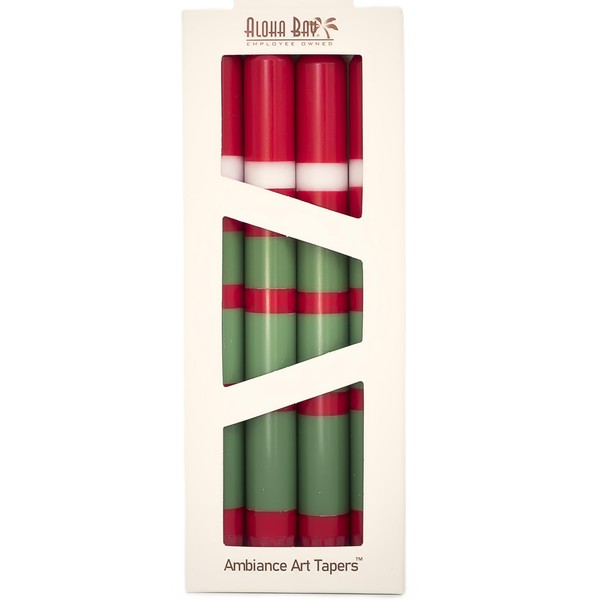 Aloha Bay Multi Color Taper Candle Merry Christmas – Coconut Wax, Dripless, Unscented, 9 Inches, Pure Cotton Wicks – Artful Design for Special Occasions | 4-Pack