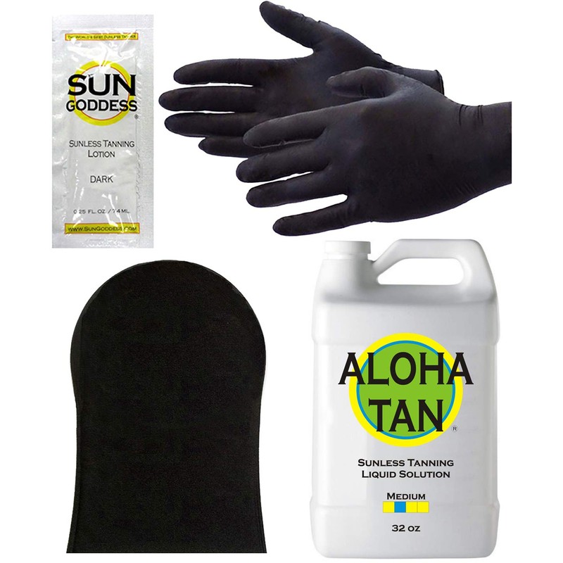 - + FREE BONUS: (1) ALOHA TAN Sunless Self Tanning Applicator Mitt. Our ALOHA TAN Sunless Self Tanning Applicator Mitt Works With Any Sunless Self Tanning Lotion, Foam Mousse, Liquid Solution and Spray Tanning Products